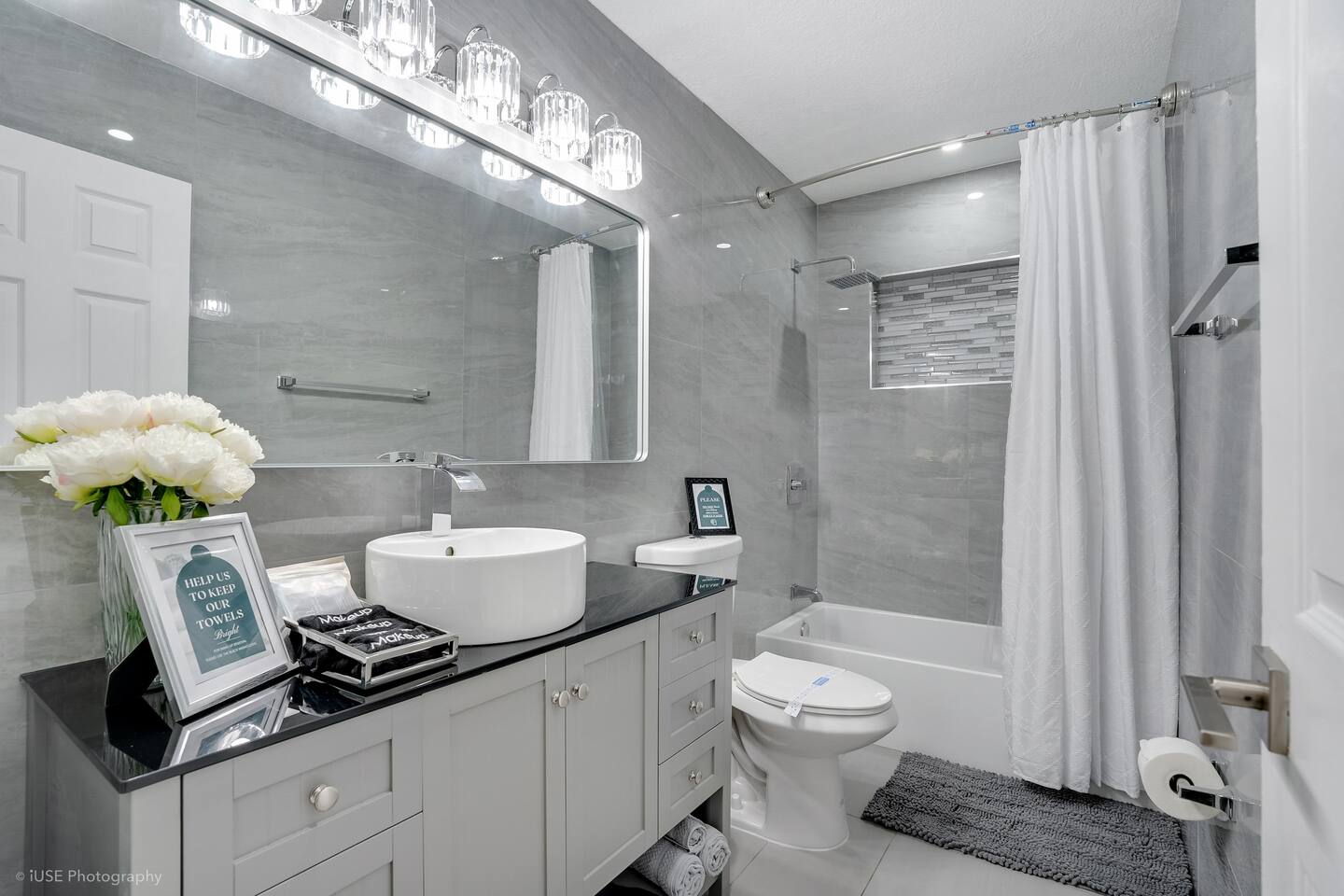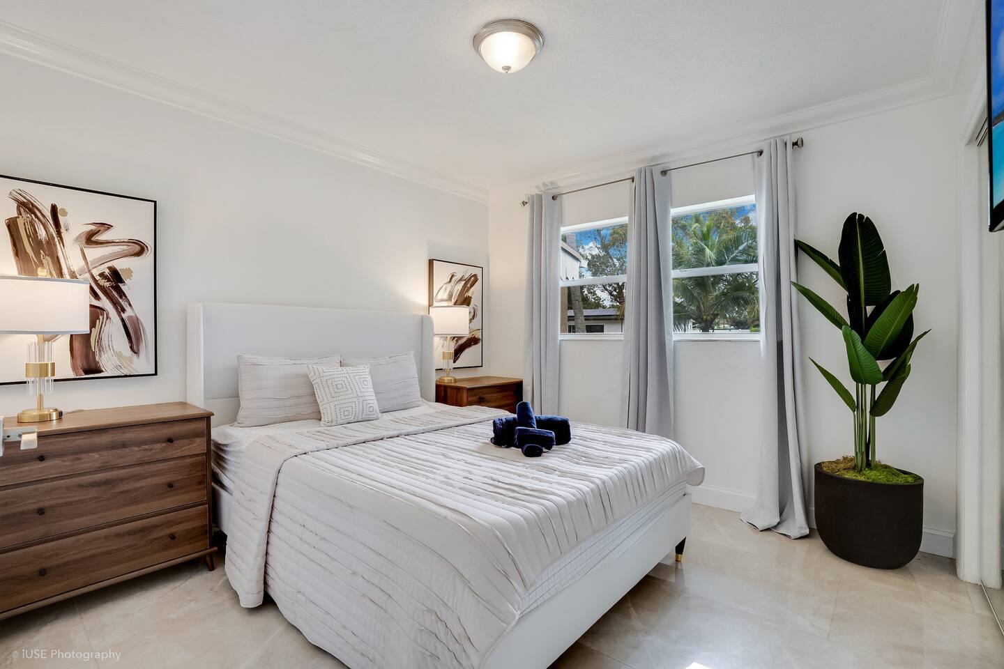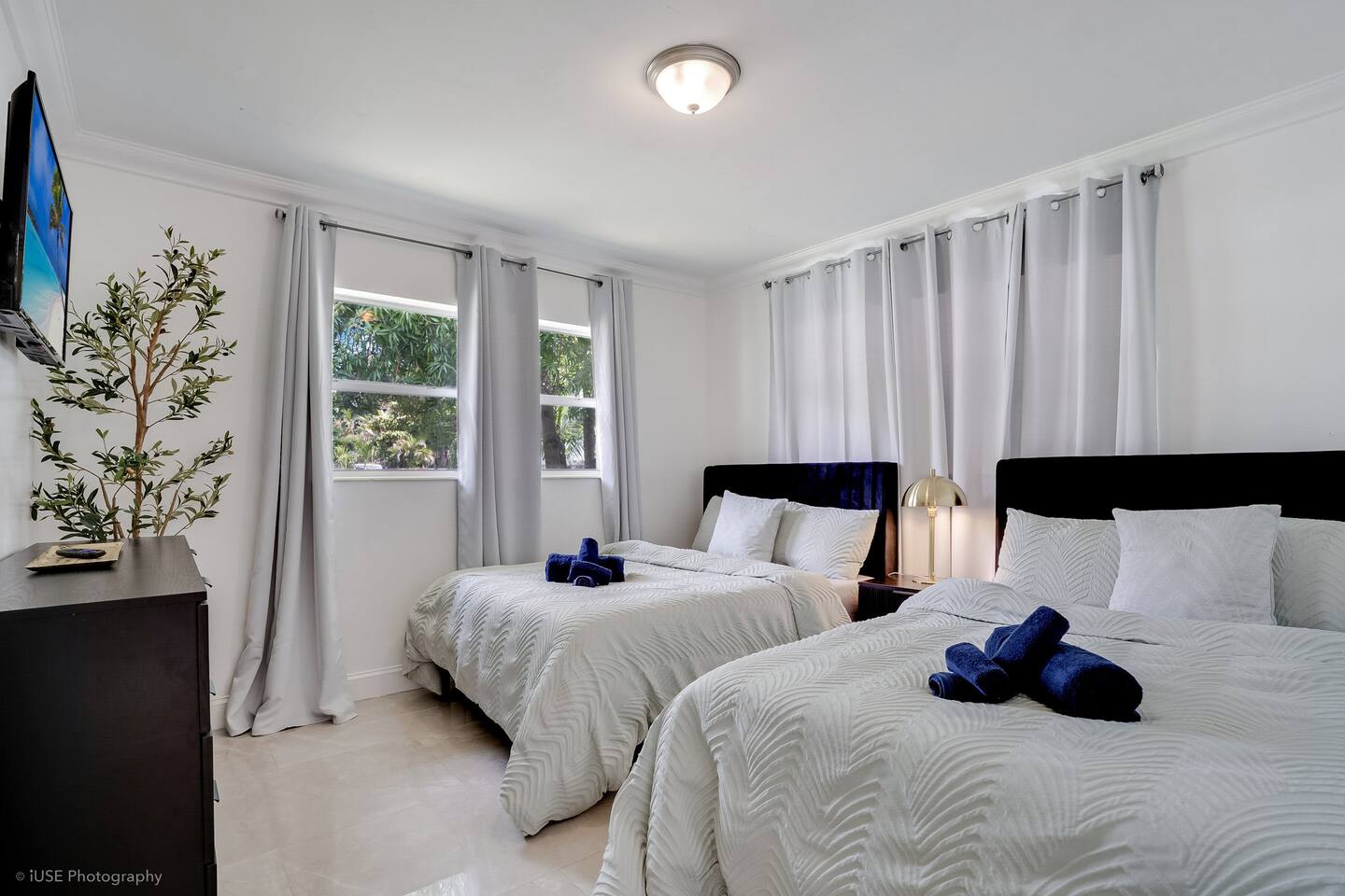 This newly renovated and conveniently located home puts you just minutes from everything Fort Lauderdale has to offer. 📍Prime Location - 4 miles to Las Olas Boulevard (restaurants, bars, nightlife) - 4 miles to Port Everglades (cruise terminal) - 4 miles to Fort Lauderdale Convention Center - 4 miles to the Brightline Station (easy travel to Aventura, Miami, Boca Raton, West Palm Beach & Orlando) - 5 miles to Fort Lauderdale Beach - 5 miles to Fort Lauderdale-Hollywood International Airport - 5 miles to Hard Rock Hotel & Casino (entertainment, dining & nightlife) - 6 miles to Broward County Convention Center - 7 miles to Hollywood Beach - 10 miles to Sawgrass Mills Outlet (South Florida’s largest outlet mall) - 14 miles to Aventura Mall (luxury shopping & dining) - 30 miles to South Beach 🛌 Comfortable Space - Room 1: Queen bed with Smart TV - Room 2: Two queen beds with Smart TV - Room 3: Queen bed with Smart TV - Room 4: Queen bed with Smart TV - Room 5: Queen sofa bed with Smart TV - 3 full bathrooms with spa-like finishes, each fully stocked with washcloths, towels, and a hair dryer. - Shampoo, conditioner, body wash, and hand soap are provided for your first few nights. You may need to purchase more depending on usage. 🍽️ Fully Stocked Kitchen - Stainless steel appliances - Pots & pans, baking pans, utensils, and cooking tools - Plates, mugs, and glasses - Toaster for quick breakfasts - Waffle maker for fun, homemade brunches - Ninja blender for smoothies or frozen drinks - Air fryer for quick and healthy meals - Nespresso machine for premium espresso (pods provided) - Cold brew coffee maker for those hot South Florida mornings - Cocktail shakers for mixing your favorite drinks and entertaining in style 🌴 Outdoor Space - Fully fenced backyard - Grill and burner - Dining set with umbrella 🚗 Easy Parking + Access - Private driveway - 2 car garage - Self-check-in via keypad 💻 Extras to Make You Feel at Home - High-speed Wi-Fi - Washer/dryer - Fresh towels, toiletries, iron, and essentials for your stay 📌 House Rules - Please ensure all doors, windows, and gates are locked when leaving the property. Garage door must remain closed when not in use to maintain safety and security. - Keep noise to a respectful level and respect our lovely neighbors. Quiet hours are between 11:00 PM and 7:00 AM to maintain a peaceful environment for our neighbors. If we receive a noise or nuisance complaint from neighbors or the police, there will be a $250 Noise Disturbance Fee. - We love good vibes, but this is not a party house. Parties, events, and large gatherings are not allowed. - Only the number of guests confirmed on the booking are allowed at the house. - Must be at least 18 years old to book. Photo ID may be required upon check-in. 🐶🐱Pet Policy - Pets must be approved prior to booking. Pet fee applies (varies by size and breed). - Pet must be fully house trained (potty trained). - All pet waste must be picked up and properly disposed of. - Pets must not be left unattended unless crated. - You are fully responsible for your pet at all times during your stay. - No excessive shedding – all pet hair must be removed prior to checkout. - Pets must not cause damage to furniture, floors, or decor. - Bringing a pet without prior approval is a violation of house rules and will result in: $1,000/day fine, request for immediate removal of the pet or additional cleaning and damage fees. ⚠️ Booking Requirements & Safety - Guests must digitally sign the Short-Term Rental Agreement before check-in. - Exterior security cameras are in place for safety. They monitor the front and back yards but do not look into interior spaces of the home. - No drugs or illicit activities are allowed at any time. If security, police, or emergency services are called due to any disturbances or concerns, a $250 service fee will apply, and you may be asked to leave. - Lost or missing TV remotes will incur a $50 replacement fee. - Please note that some of the chandeliers in the home hang low. We kindly ask you to be mindful when walking beneath them to avoid bumping your head or causing any damage. - For safety reasons, please do not touch, swing from, or attempt to adjust the chandeliers. They are delicate fixtures, and any damage will incur a $1,000 replacement fee. - Please be aware that there are a few steps throughout the home, most are just one or two steps, though some may be slightly steep and lack handrails. You'll encounter steps at the main entrance and exit, when accessing the garage, and leading into the master bedroom and master bathroom. We kindly recommend using extra caution when navigating these areas, especially when carrying luggage or moving around in low lighting. - Guests assume responsibility for their safety, including navigating low-hanging chandeliers, steep or uneven steps, and other hazards. - Any items left in the fridge, kitchen, or house will be discarded after checkout for health, safety, and sanitation reasons. Please double-check before you leave! Get